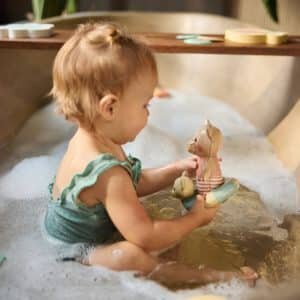 In bad spelen wordt nog leuker met dit drijvende badpopje! Dit drijvende badpopje geeft je kindje een vertrouwd speelmaatje tijdens het badderen. De afneembare ring zorgt voor afwisseling: samen met het popje of juist los in het water. Het materiaal is waterproof en makkelijk schoon te maken. Dankzij de zachte vormen en de veilige grip is het ideaal voor kleine handjes. Zo combineert het spelen met gemak en plezier in één.