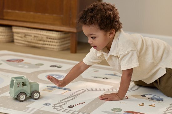 Pak de tractor en ga de weilanden in! Deze houten traktor met rubberen banden vliegt niet zo snel uit de bocht.